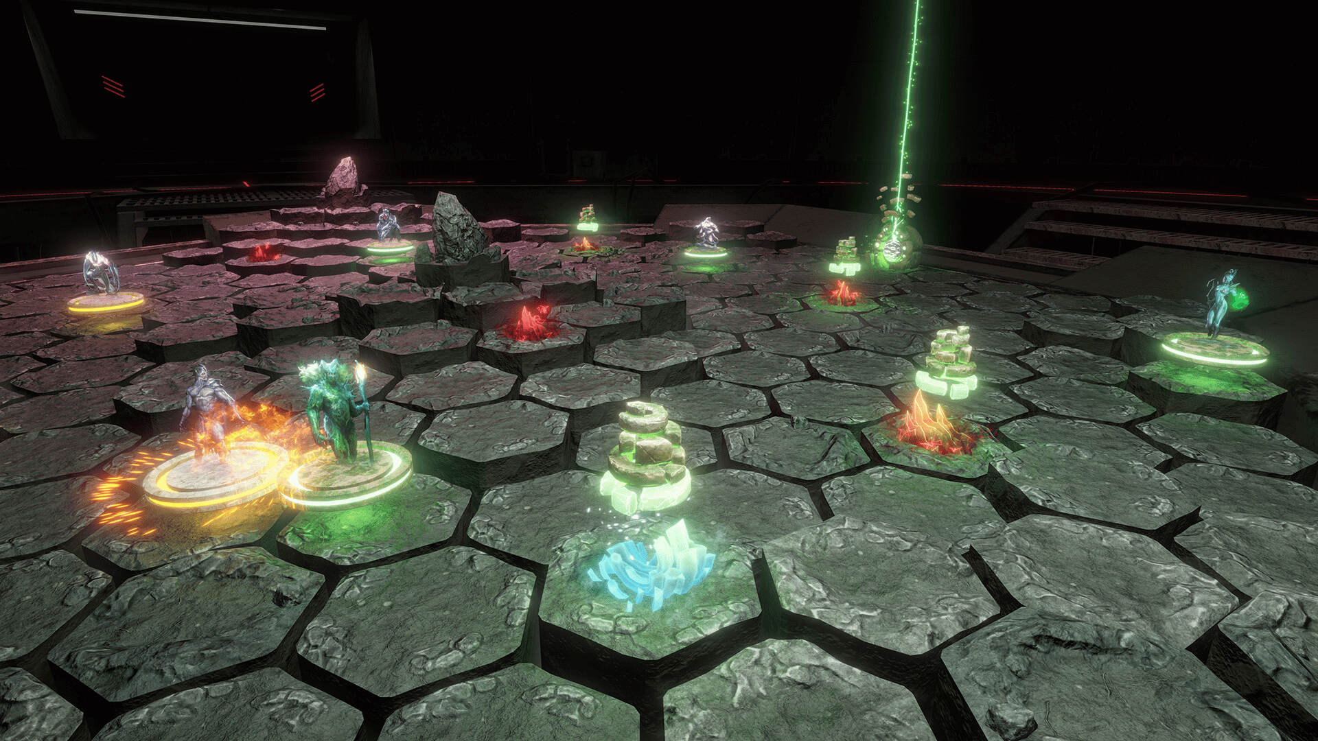 Sollarion is a turn-based strategy that combines a collectible card game and a 3D strategy genre. Players summon units and cast spells using their pre-built deck. Summoned units can be moved around the board and attack enemy units and structures. The player who destroys an opponent's portal wins. It is necessary to occupy resource tiles and build mines there to play more powerful cards. There are also other special effect tiles on the board that expand the range of possible play styles. Each player will find their own winning strategy. Map terrain and tile layout are different in every match, making Sollarion less repetitive, more complex and more entertaining than its competitors.