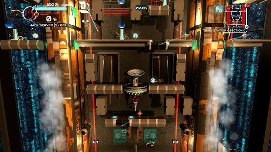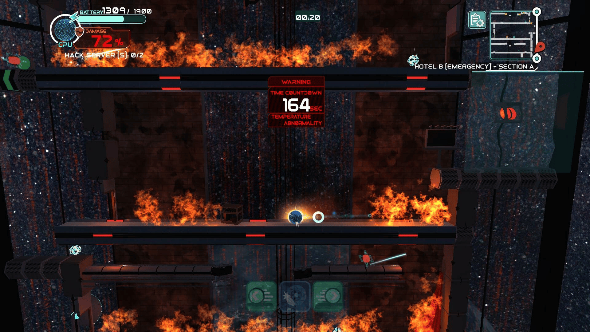 Drag to move, hold to stop, charge to sprint. In danger, hold nearby hackable machines to make a way out.