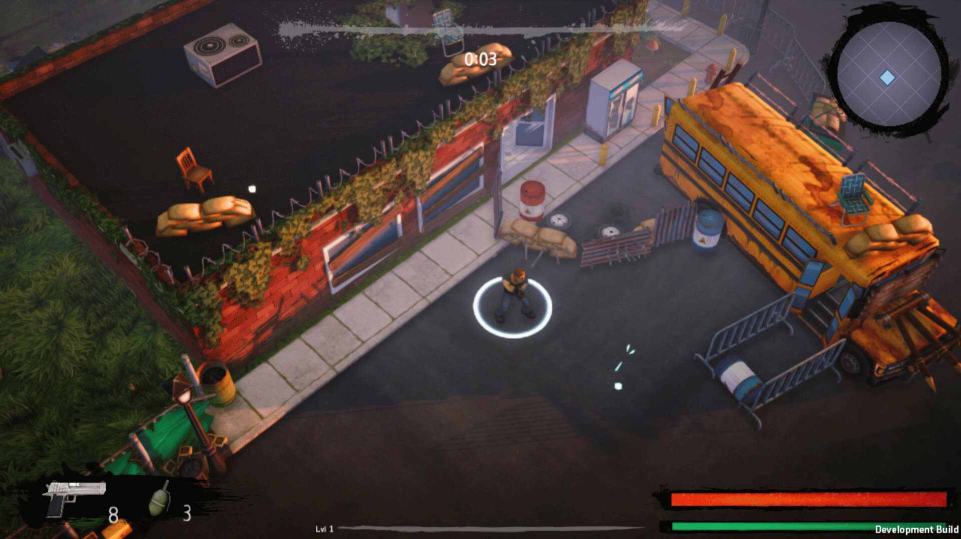 Zombie Survivals 18+ is a blend of top-down shooter and visual novel. The world of the game is the ruins of the city after the zombie apocalypse. The enemies are hordes of zombies who want to kill the main character.