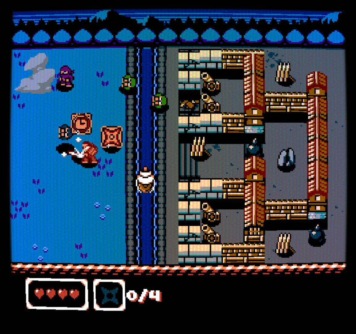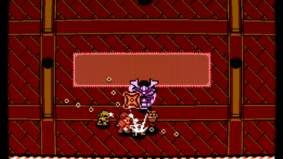 Siege of Osaka is a retro hybrid of Beat-em-up and Brick Breaker. Send enemy ninja rolling into walls and fortifications to bring down their castles. Localized/parodied for American audiences.