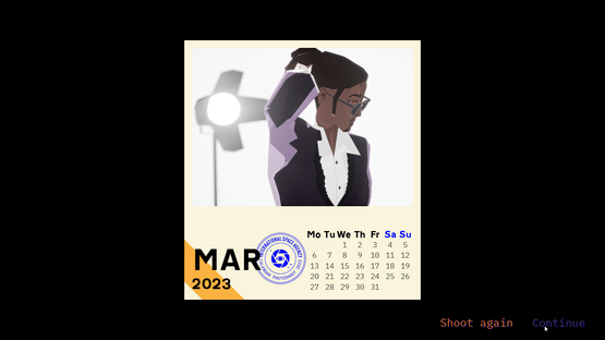 Good day. Today you will be playing the role of a renowned photographer. The International Space Agency has commissioned you to photograph a team of astronauts to publish a charity calendar for 2023.