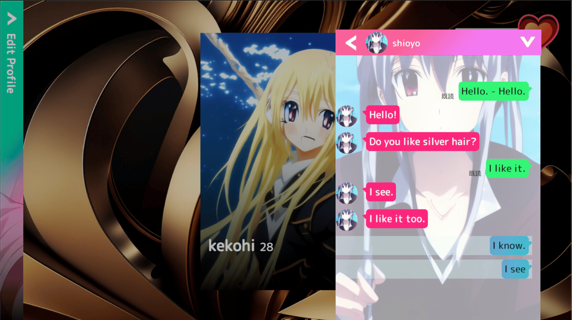 What is AI? What is love? In Ainder, you will be able to swipe “Like” or “Nope” on characters created by AI. They sometimes send photos that might excite you. Through communicating with the characters, the human and the AI will learn and adapt.