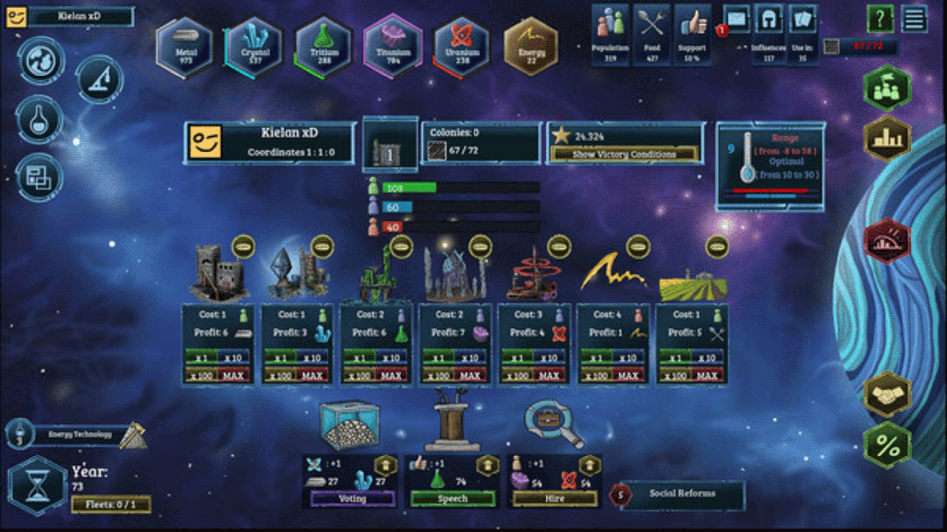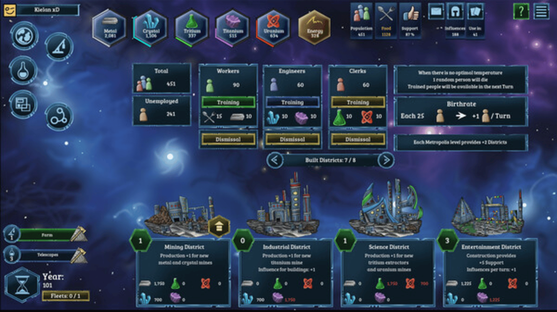Galactic Empire is a 2D turn-based strategy game where you, as the Commander, decide the fate of the entire universe. Expand your planet, explore solar systems, play cards in cantinas, modify your ships and conquer more planets.