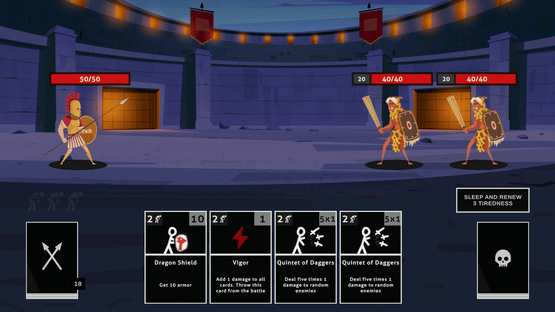 Become a medieval gladiator in roguelike deckbuilder game! Build your own deck and tactics to beat dangerous enemies! Get, upgrade and discover new cards. Explore next arenas and climb the hierarchy. Fight for freedom!