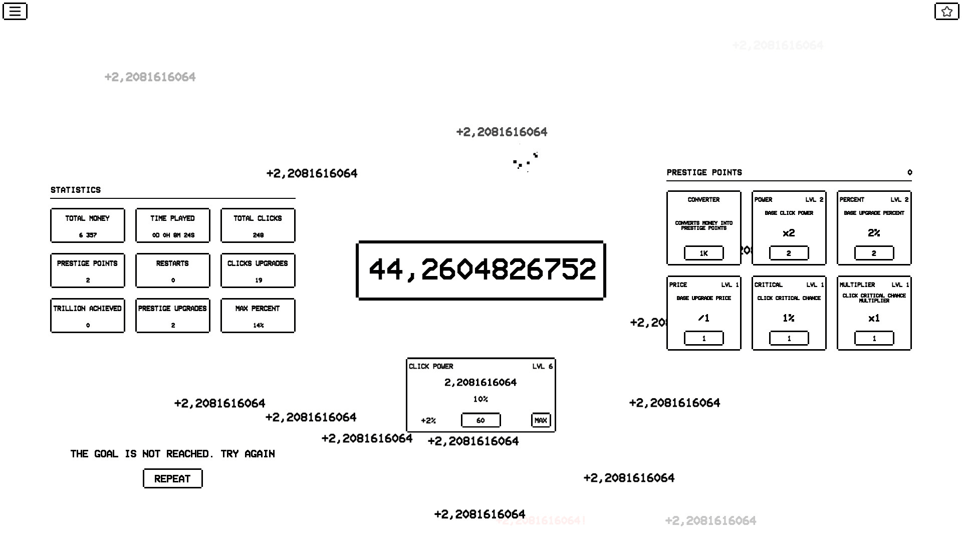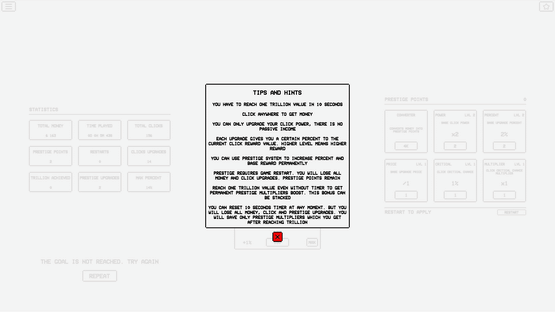 Ten Seconds Trillion is a unique clicker game with simple goals but addictive gameplay. Can you reach one trillion value just by clicking and buying upgrades?