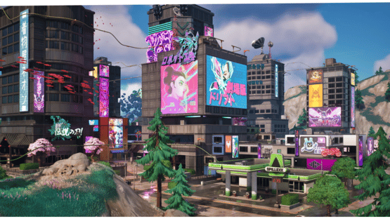 Become Mega in Fortnite Battle Royale: Chapter 4 Season 2! Ride the grind rails of Mega City and swerve on it's streets on a sports bike. Go beyond the neon towers to the rest of the new biome: Cause havoc at Steamy Springs, drive a Nitro Drifter to the Drift Ridge car track, sharpen your Kinetic Blade skills at Kenjutsu Crossing and more!