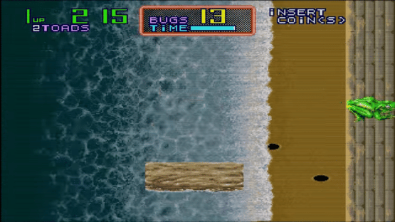 Ribbit! (リビット!) is an arcade game developed and published by Sega for Sega System C hardware. It's similar in nature to Frogger, in that the user controls a frog, capable of moving in four directions. Your task is to eat all the small bugs while avoiding bigger ones.