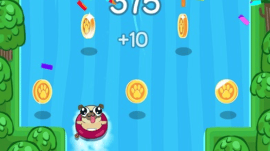 Hot diggity dog, your pug is ready to ride in this game of rapid reflexes! Tap left or right to guide your pooch along a fast-flowing river. Collect boatloads of coins, but don't hit the riverbank, or your pug's joyride is over.