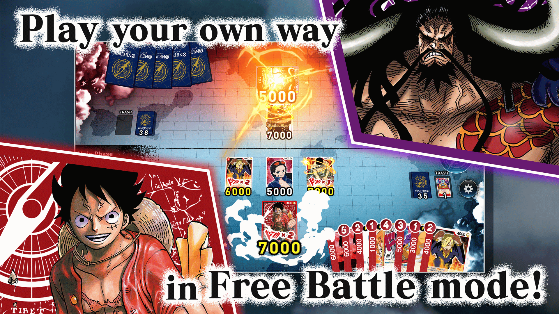 One Piece Card Game is a collectible card game themed on the world of One Piece! Characters from all over the history of One Piece, including the anime, manga, and movies, are featured in the game, and there are even cards inspired by famous scenes from all of them!