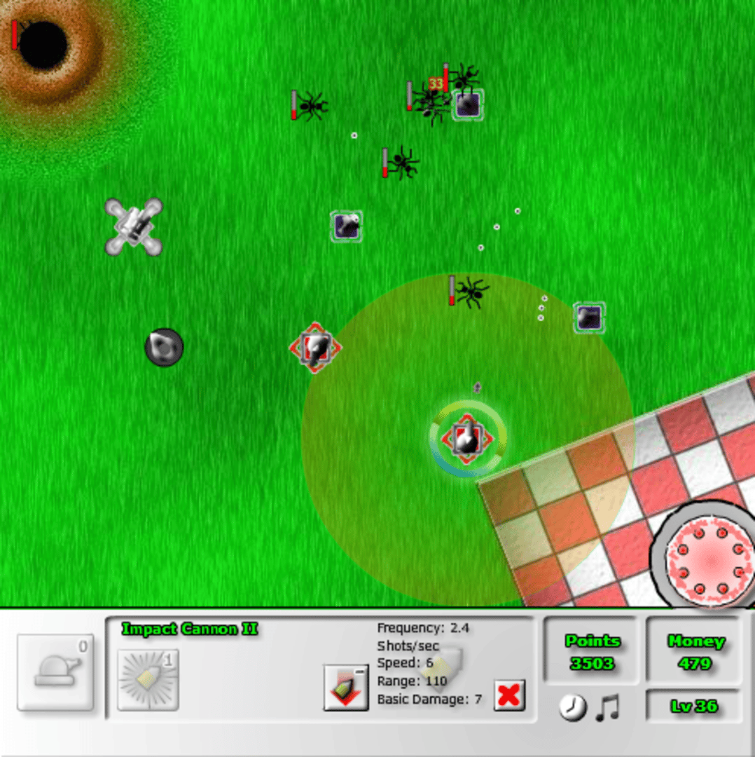 Antbuster is a game that aims to protect your delicious cake on a picnic. The cake has 8 pieces and the ants will do everything to reach them. Fortunately, you can spread cannons through the garden, and each cannon can be evolved in several different ways. There are over 50 different types of cannons to crush these insects. Can you protect the picnic?