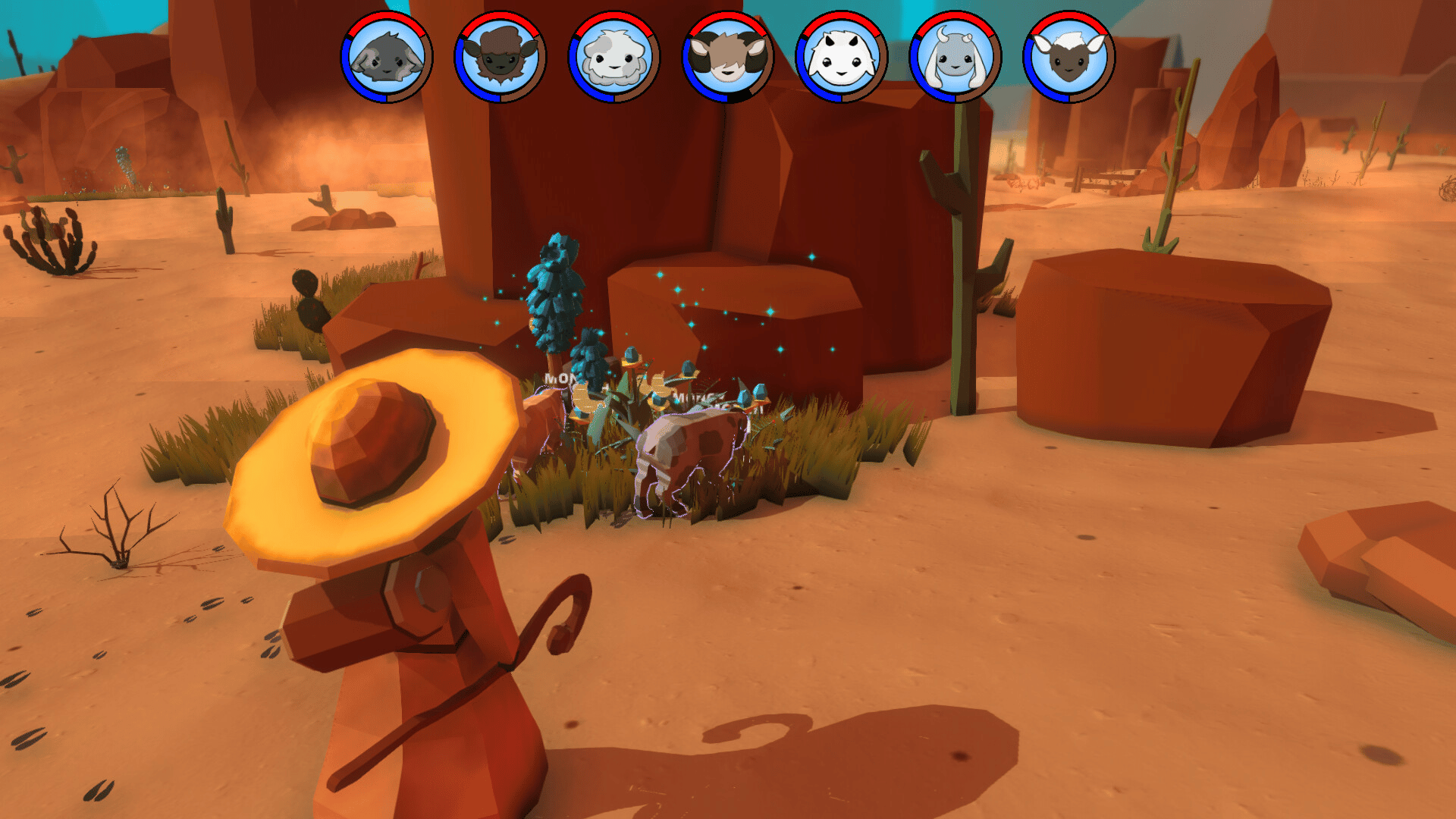 Lead a small herd of sheep through the desert. Ensure their survival by managing their needs. Protect and save them from various environmental hazards, as well as their own silly decisions. Bond with them over the course of your journey by fulfilling their wishes, and be their Shepherd.