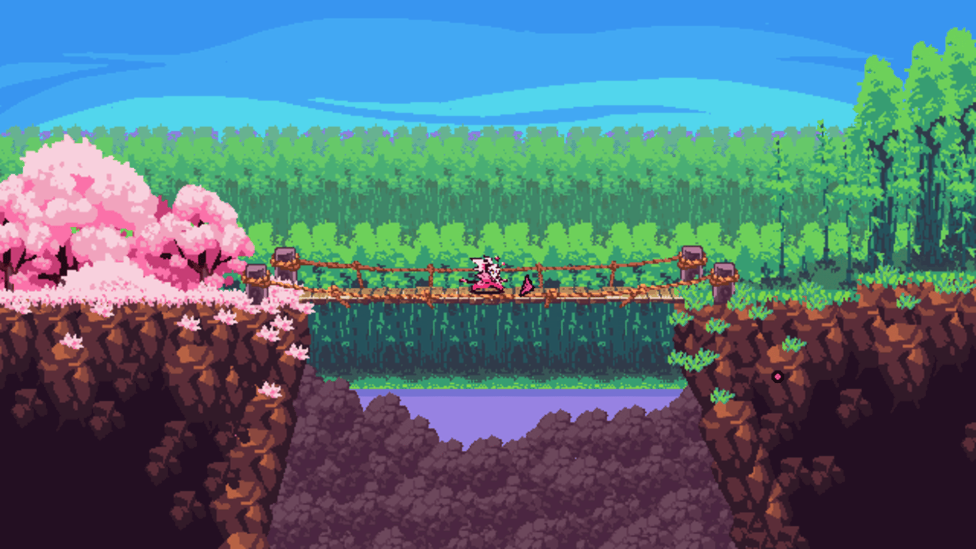 Slash and dash as Pink, the cherry blossom samurai, to save your love from a fate worse than death! A platformer where your attack, dash and jump are all the same mechanic. Advance through perilous obstacles and defeat elemental spirits at the risk of losing all of your progress at the slightest misstep. You may be brave, but you're still just a cherry blossom