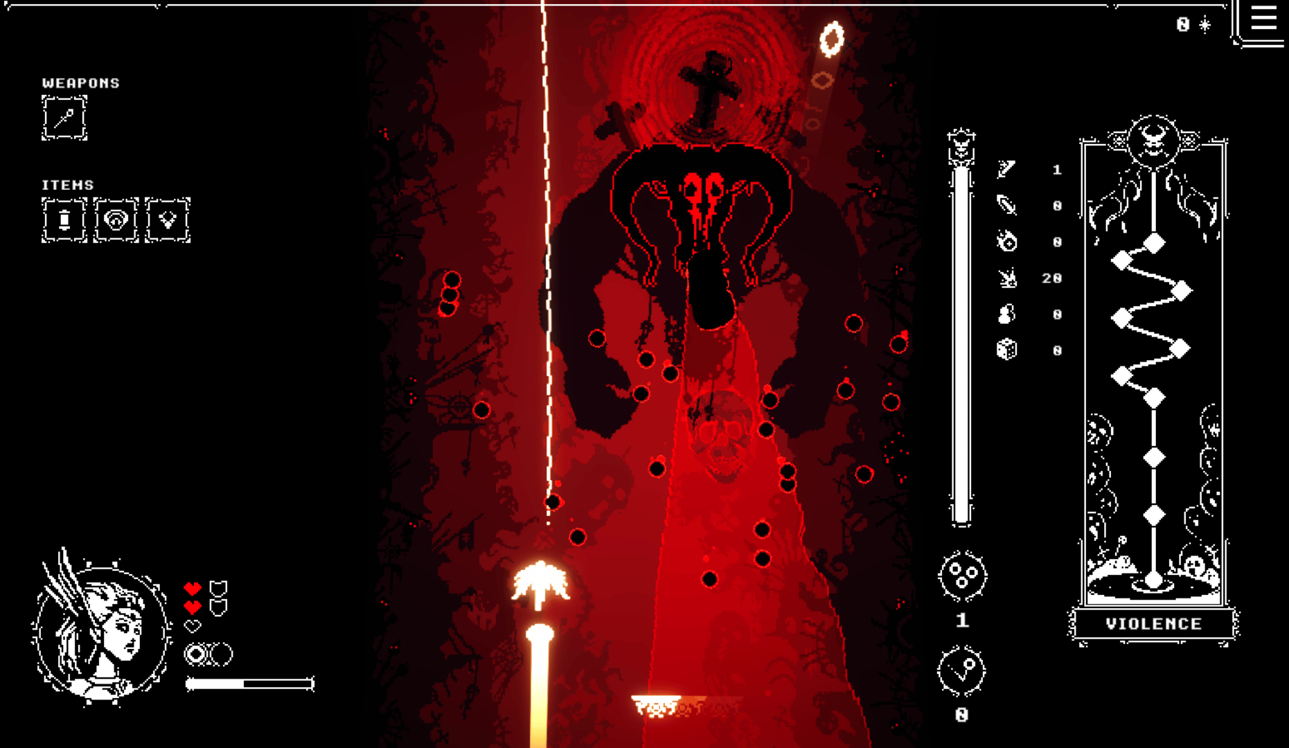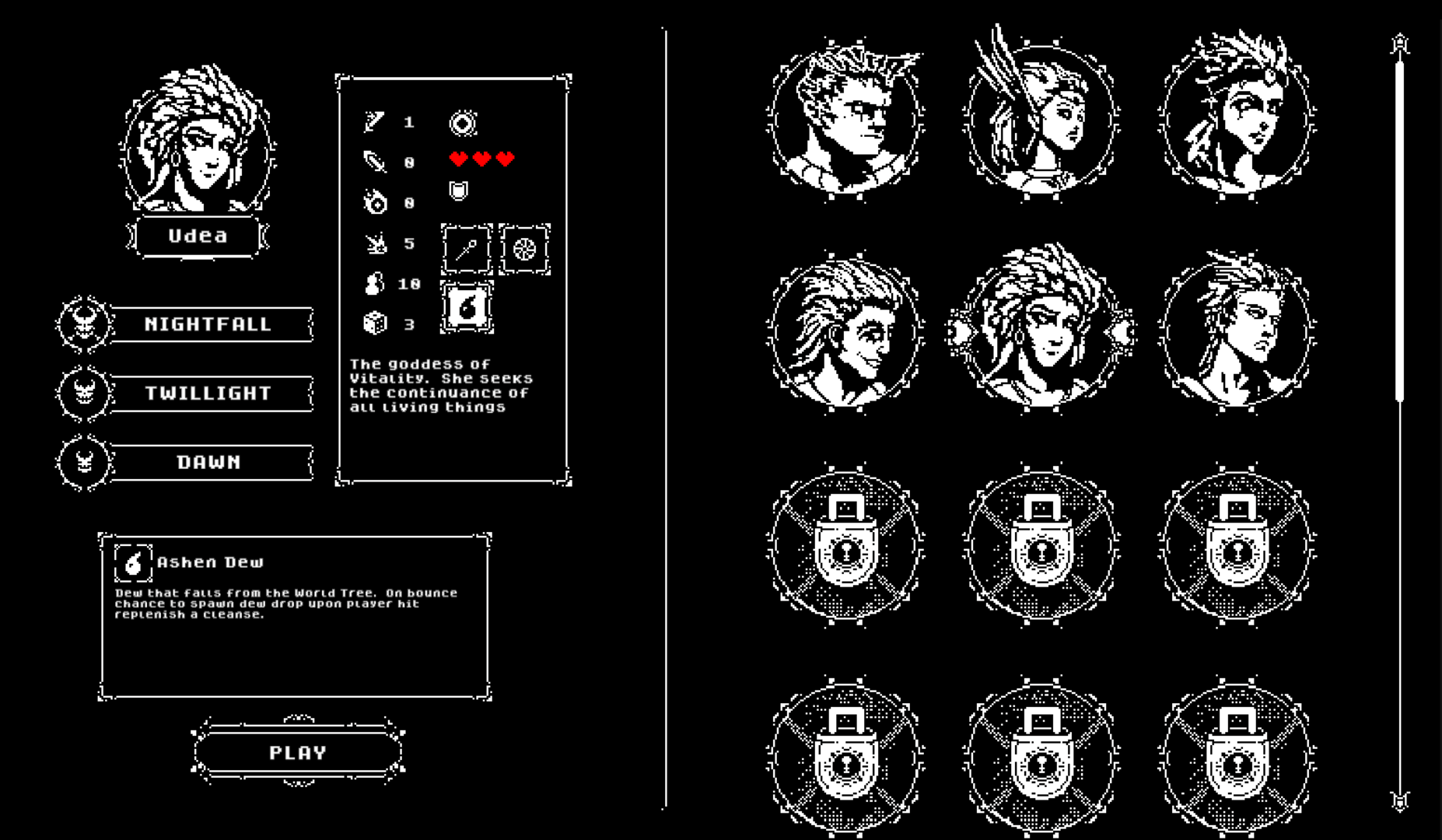 Against Great Darkness is a brick breaker roguelike. You are a paragon of pagan mythology trying to escape the clutches of Lucifer. Fight through waves of demonic entities and acquire great relics which aid you on your escape. Stumble upon unique events which can either reward or hinder your ascent. Gather shards on each run to unlock upgrades that will better your chances.