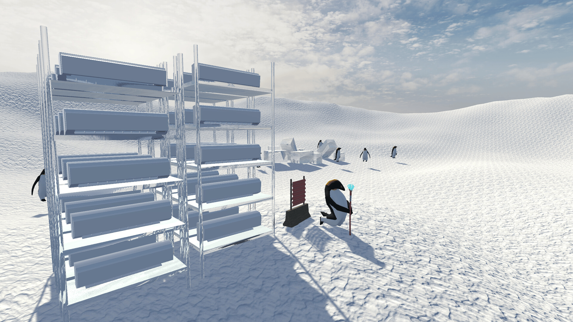 Collect air conditioners, save Antarctica! Only you can save penguins. Antarctic savior! This is an open world adventure game with various contents such as sports mini-games, FPS, boss battles, item farming, quests, platformers, and puzzles.