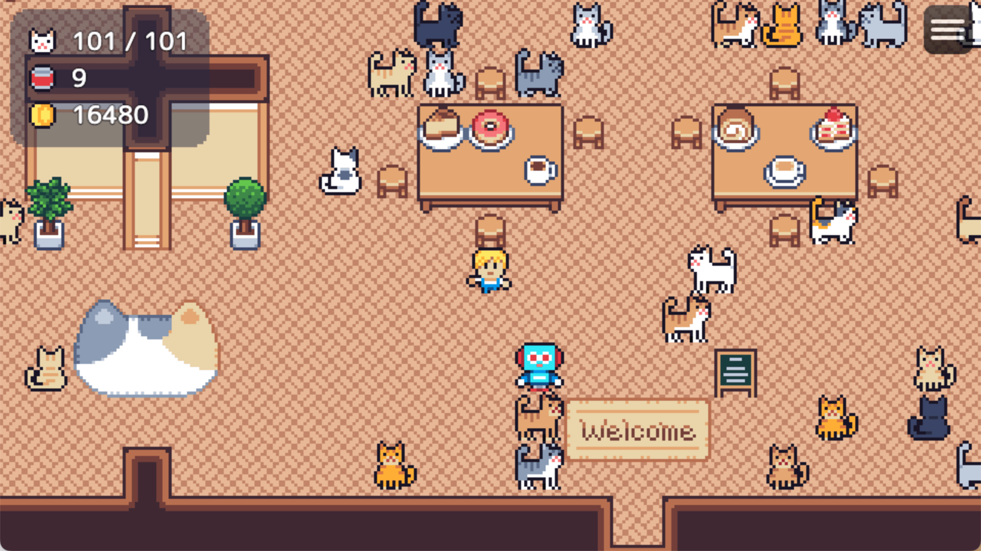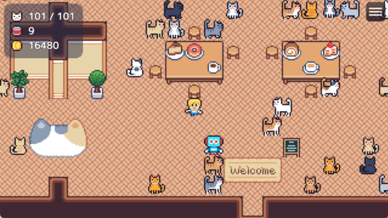 You aim to collect 101 cats. You can also collect the cafe’s food recipes and furniture! They'll come to the cat cafe if you buy canned cat food and give it to a cat.