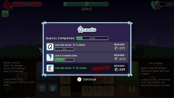 The grim reapers, Grimm and Rose, need your help to defeat a legion of monsters, ghosts, and evil bunnies using the power of words! Letter Quest Remastered is the remake of the Bacon Bandits' first game, now with an endless mode, new soundtrack, and fully animated monsters!