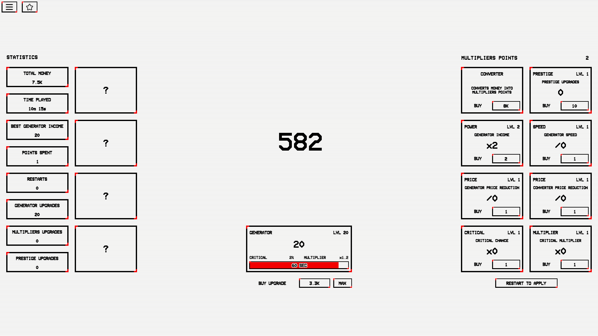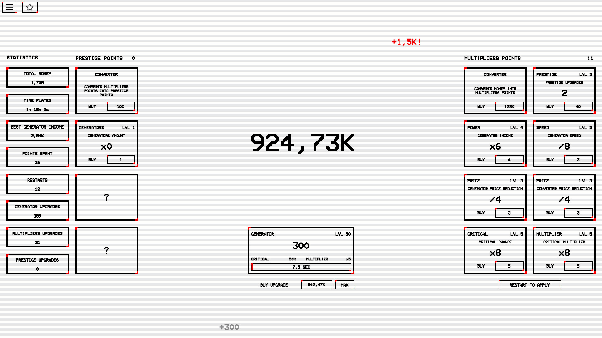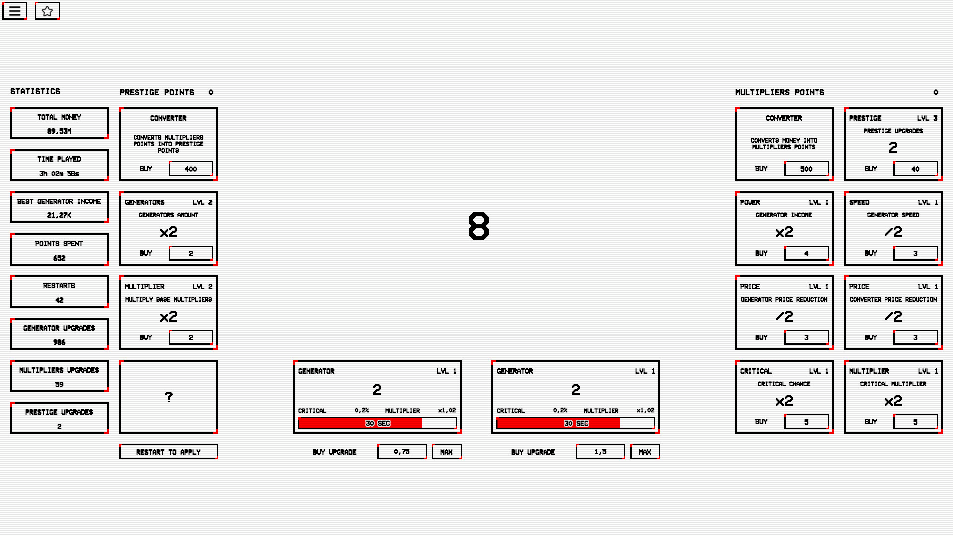 Unique idle game with endless gameplay mechanics. Hardcore goals but fair possibilities to reach them. Create the most powerful income generator and be the best among all players!