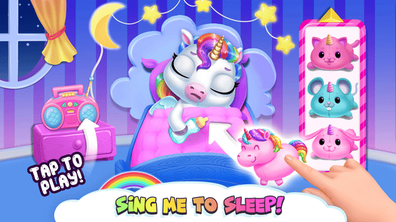 You got a gift - a super cute virtual unicorn baby! Become the best magical pony nanny! Hatch a colorful egg and take care of the cutest newborn unicorn with rainbow hair! Bathe, feed, potty train, dress up, sing to sleep and play fun games with your tiny virtual pet friend! Decorate the baby unicorn’s room with rainbow colors! Play My Baby Unicorn virtual pet care game for kids every day and watch your virtual pet pony grow!