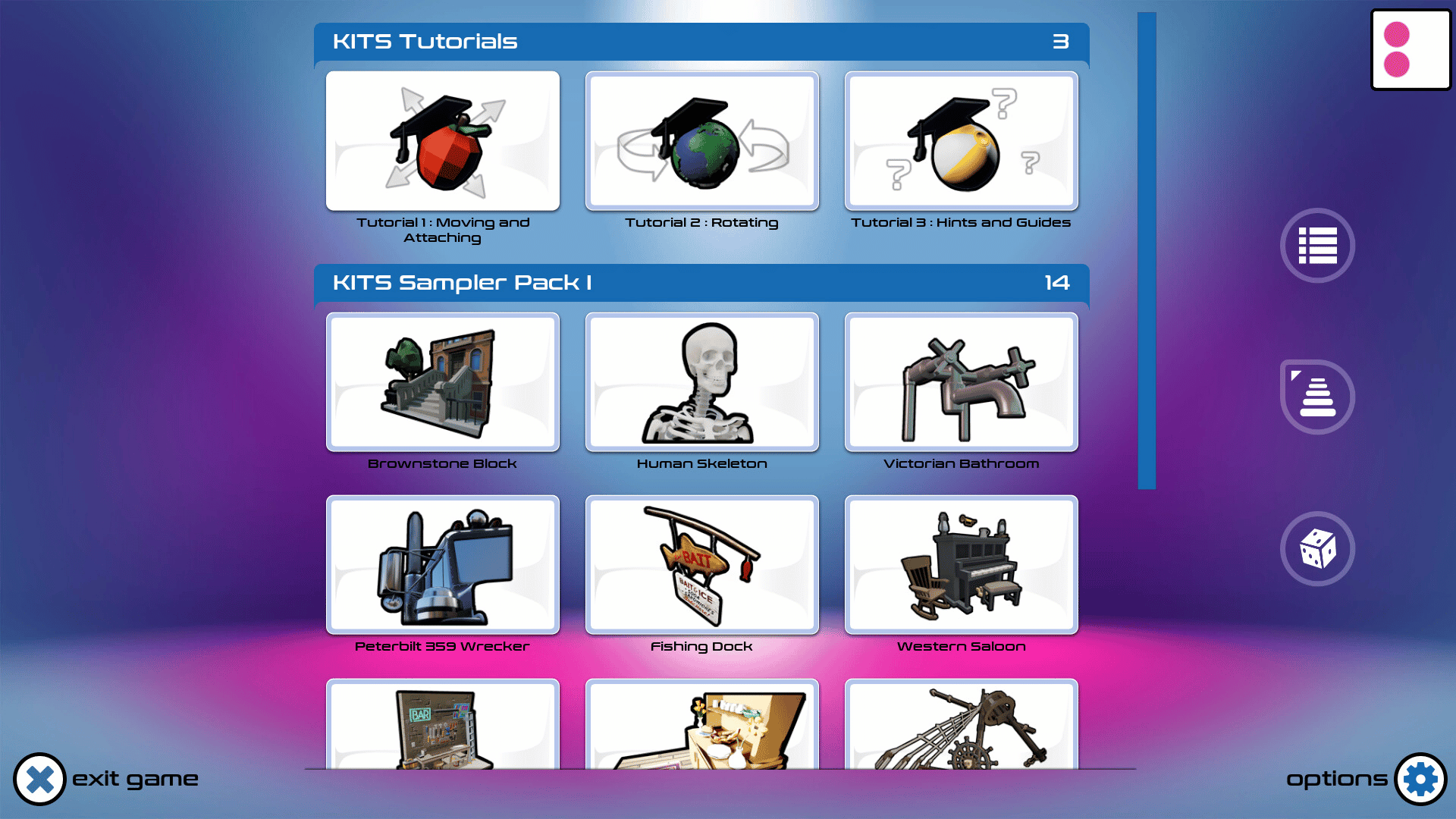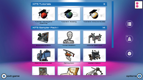 Kits is an assembly game. Discover, construct and admire beautiful little works of art. Set your own complexity and challenge levels and enjoy KITS the way you like to play.
