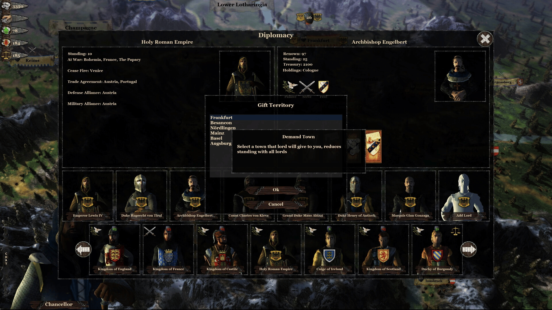 The King's Campaign is a hybrid of Grand Strategy and Real-Time Strategy gameplay set in Medieval Europe and North Africa, where you manage your cities, engage in diplomacy and direct your armies on the world map before plunging into battle and commanding your troops directly on the battlefield
