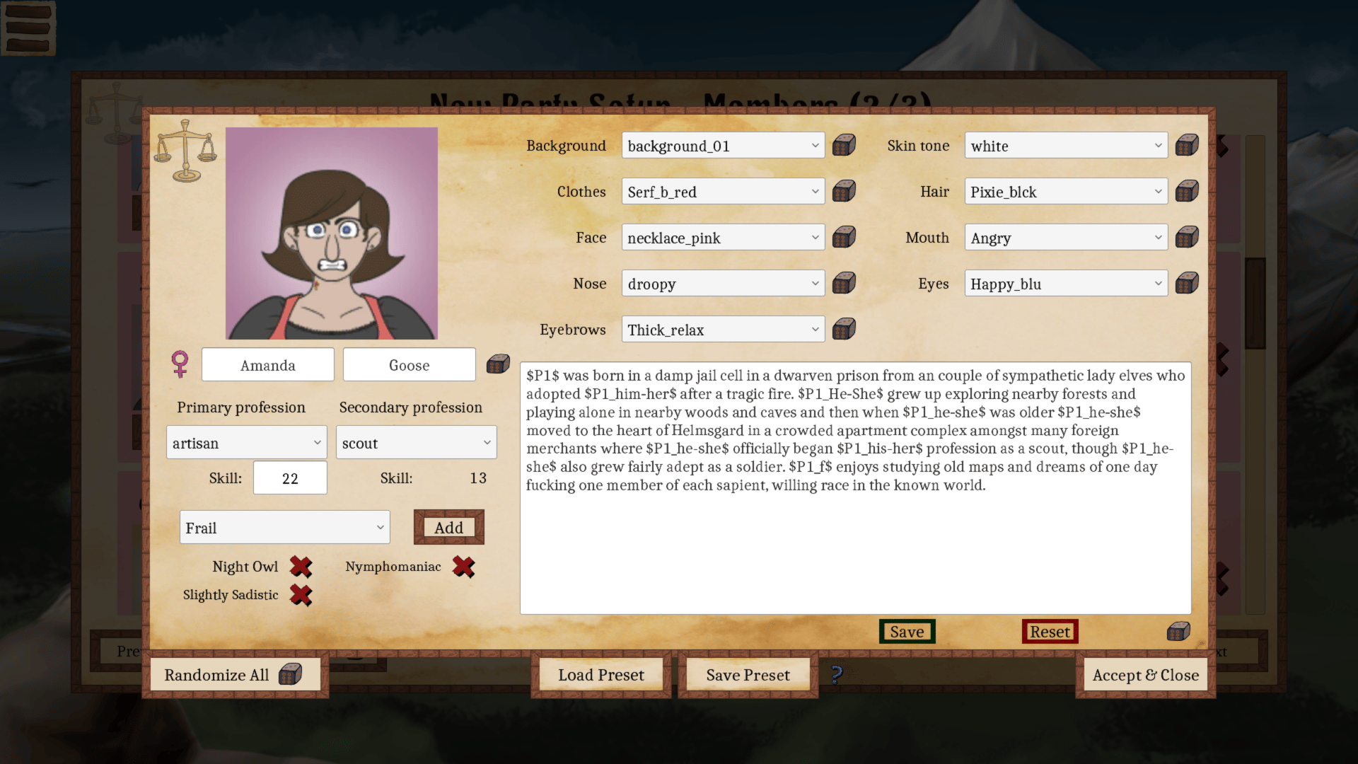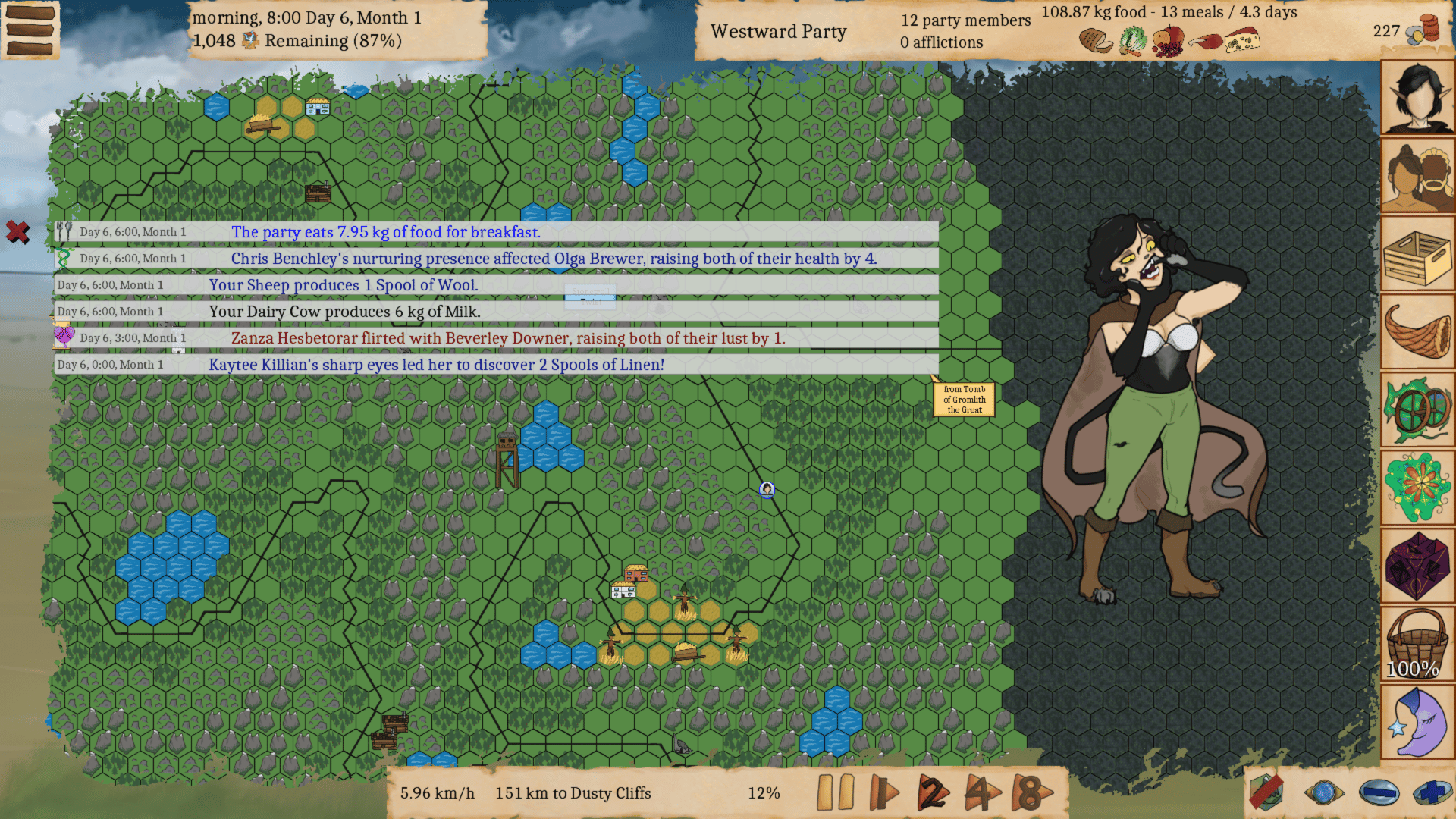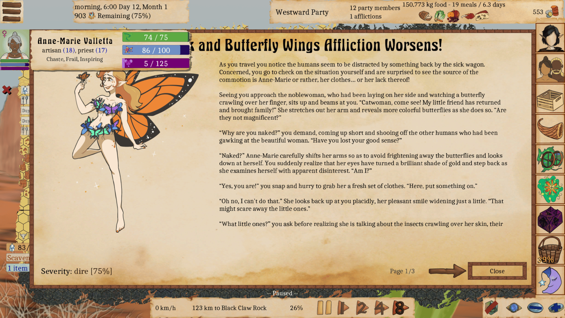 The Exile of Aphrodisia is a transformation-themed game inspired by The Odyssey and The Oregon Trail. One thousand years ago, the first humans crossed through a mysterious portal into a new magical world and settled on the island continent known as Aphrodisia. Now, however, humanity has just lost a war against the powerful Demon Empire and is being hunted down as slaves. The last remaining hope for freedom is the ruined city of Niu Heym where, with any luck, at least some of your wards will be able to return to the humans' ancestral homeworld before the portal-gate closes for another thousand years. You are an elf guide tasked with leading a small party of humans over a thousand kilometers west across all of Aphrodisia to the city of Niu Heym and the Portal Gate. With any luck, at least some of your wards will be able to return to the humans' ancestral homeworld before the portal gate runs out of rift charges. It is your job to try and get them there, but forces are acting against you, wishing to take some, or all, of your charges and to transform or enslave them. This will be a long and dangerous trek⦠and you may not walk out on the same two feet! Are you up to the challenge?