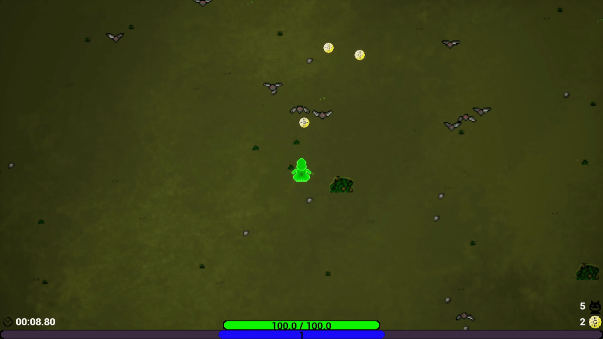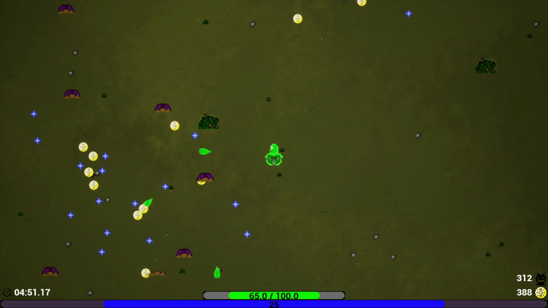 Embody a slime who must face waves of creatures. In this arena shooter, find and choose from different item to create your build, and survive as long as possible.