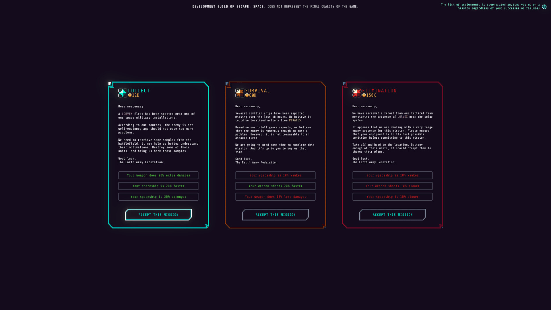 A 2D horizontal shoot’em’up. Purchase various spaceships and weapons. Upgrade them. Customize your loadout. Accept contract missions and defend our solar system against intruders.
