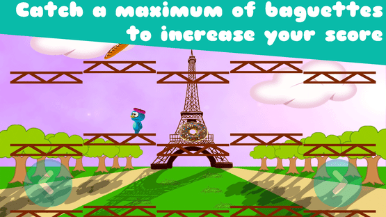 Play Gustavus most Frenchy blue monsters. Stroll from platform to platform to feed Gustave. Catch the Baguette is a 2D platform game in which to earn points you have to collect as many baguettes as possible. Simple to use, there are only two buttons to direct Gustave. But Gustave care following a particular diet. There are not only baguettes on platforms. Eat donuts will grow Gustave and reduce its speed. Drinking a soda will have a particular effect on Gustave. When will want to go in one direction it will go in the opposite direction.