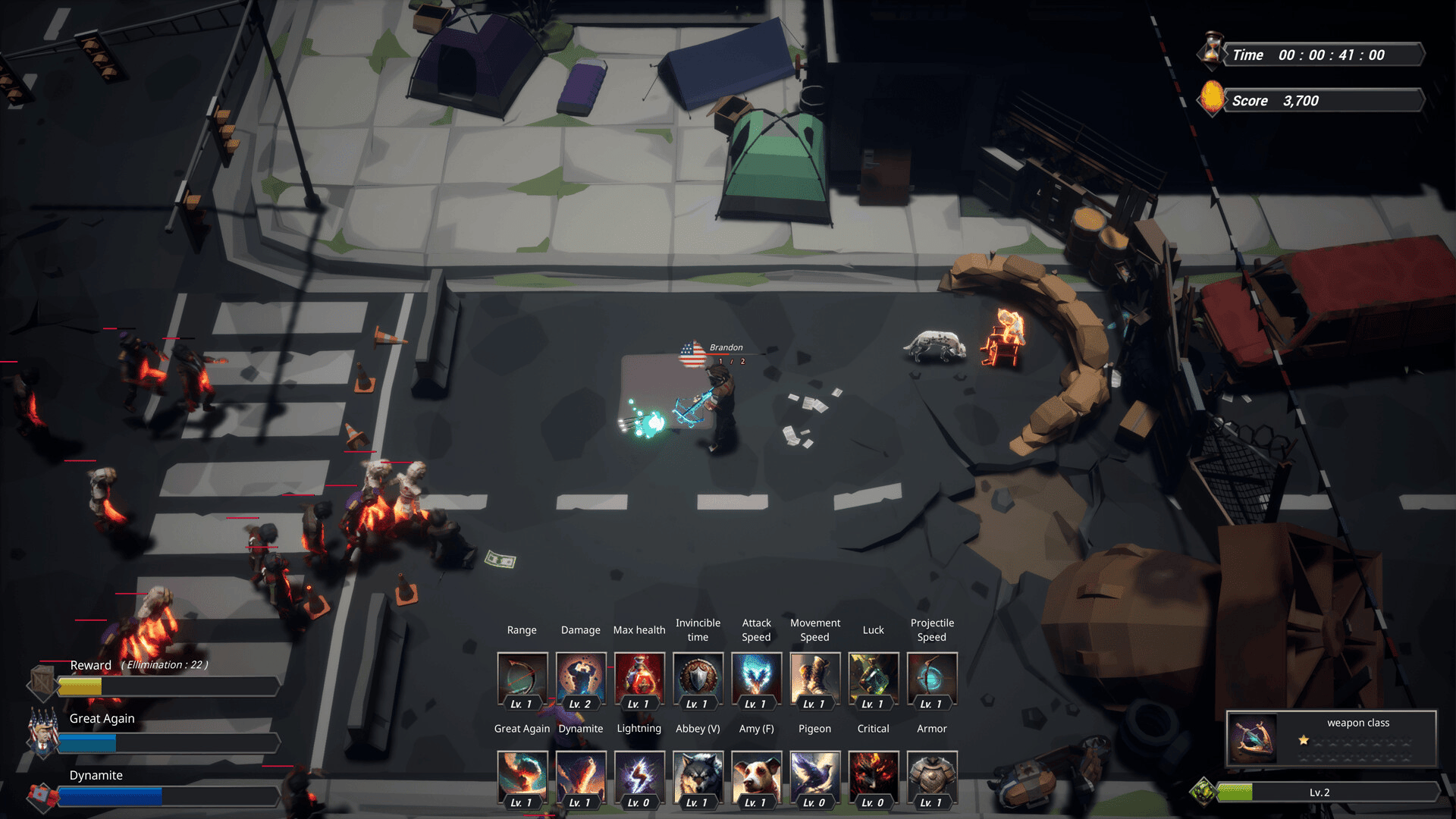 A survival roguelike game where you avoid and kill zombies, save serum, and rescue hostages with your dogs Abbey and Amy.