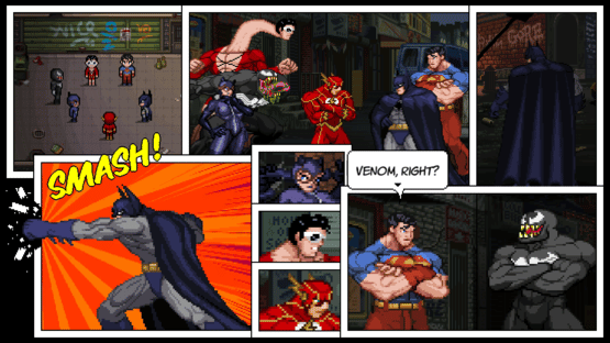 The Lonely League is a comic book style superhero tactical fangame RPG with Superman, Batman, Venom and John Lennon. It alternates between comic book cutscenes and tactical battles inspired by games like Shining Force and Final Fantasy Tactics. Battles are challenging and deeply tactical, and there are always multiple paths to victory, which often include not only attacking but also interacting with map objects and recruiting temporary characters. The story develops from common errands of an ordinary guy, slowly escalating to an epic journey with psychological and political undertones.