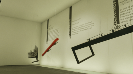 Take a first-person wander through Monuments to Guilt, a short exhibition exploring exclusionary design. Acquaint yourself with the core principles of this harmful practice, re-evaluate the objects you see every day and let guilt sit with you, for just a little while.