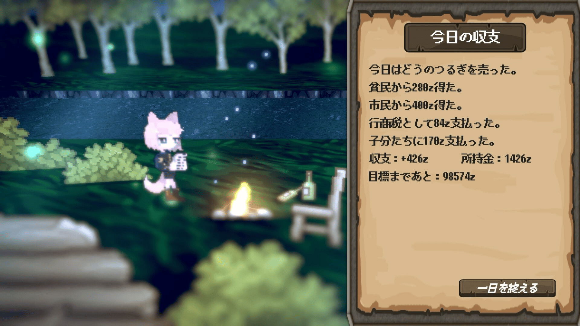 This game is a business simulation where you aim to achieve a target amount of money along with the merchant Finne. The business strategies are deployed by each player by combining five choices.