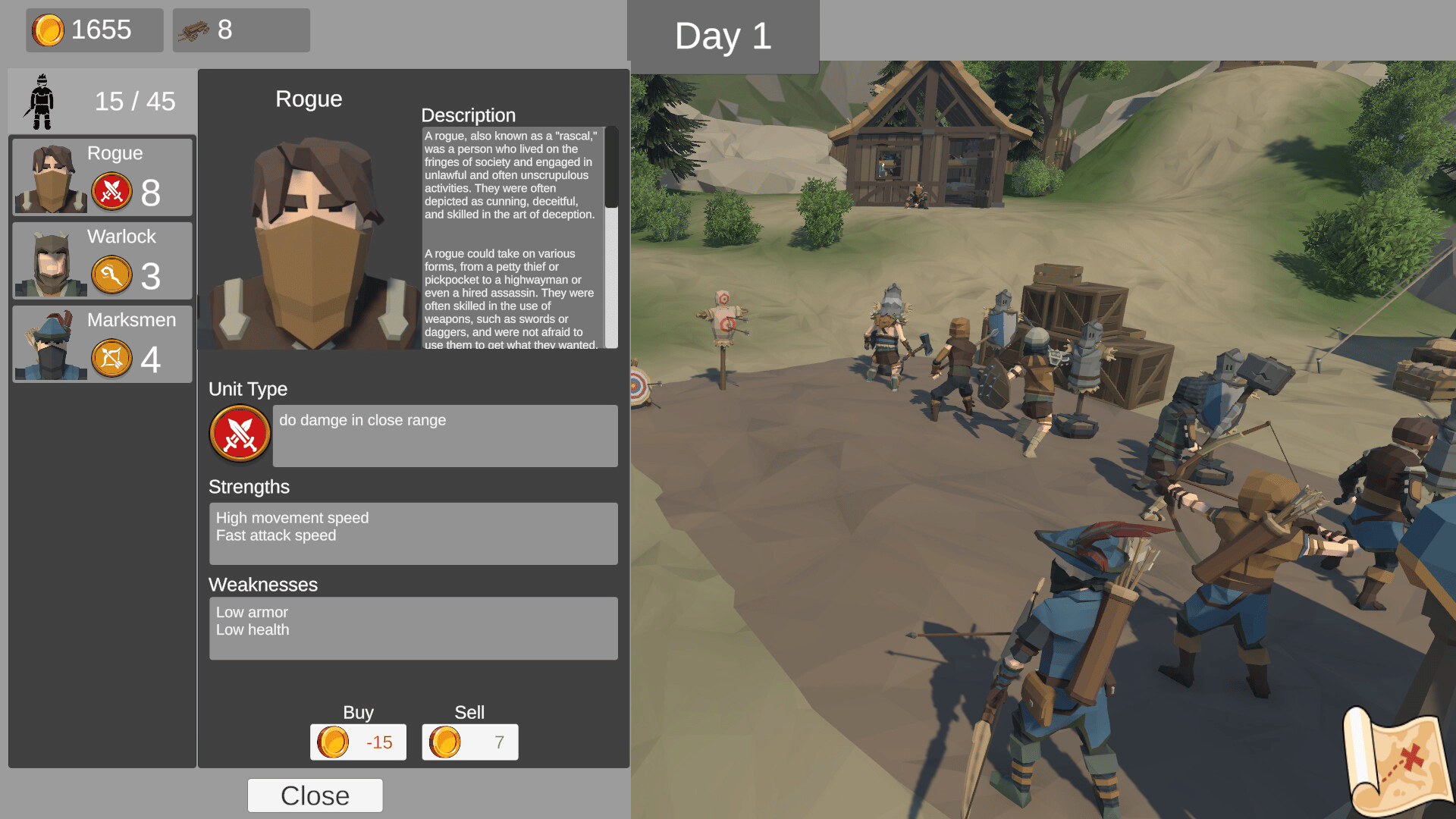 A Strategy, Auto Battle, Roguelite Game. Take control of your outlaws, rob, steal and fight your way to riches. Build up your camp and recruit more outlaws so you can take over the Kingdom.