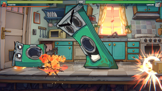 Domestic appliances battle it out in this 2D fighting game. Fight in familiar household settings using everyday items as weapons. Enjoy unique character animations and special attacks for an action-packed experience!