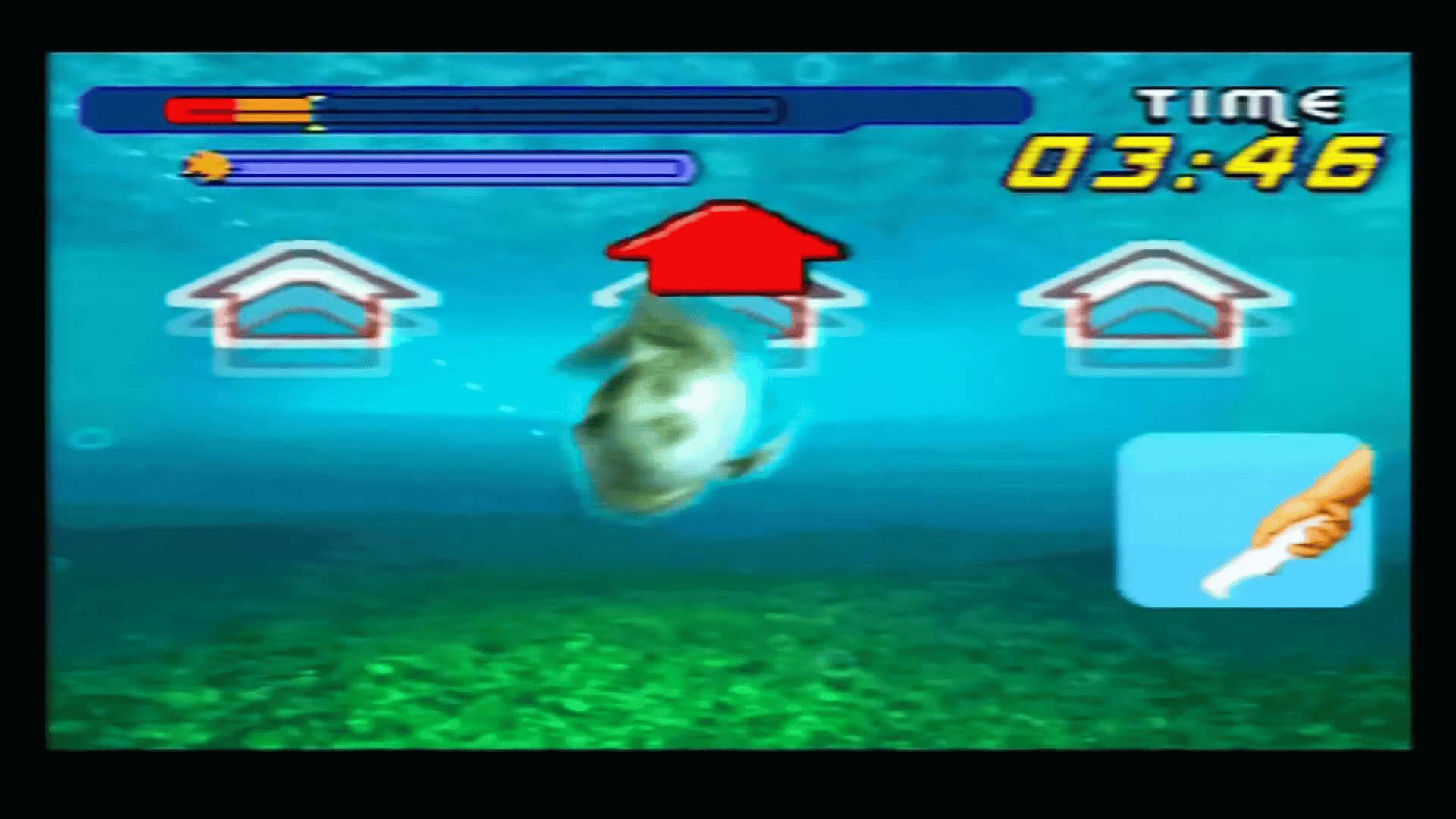 Fishing game. The game offers three options each for various fishing equipment, including bait and hooks, with the latter options for each being locked at the beginning.