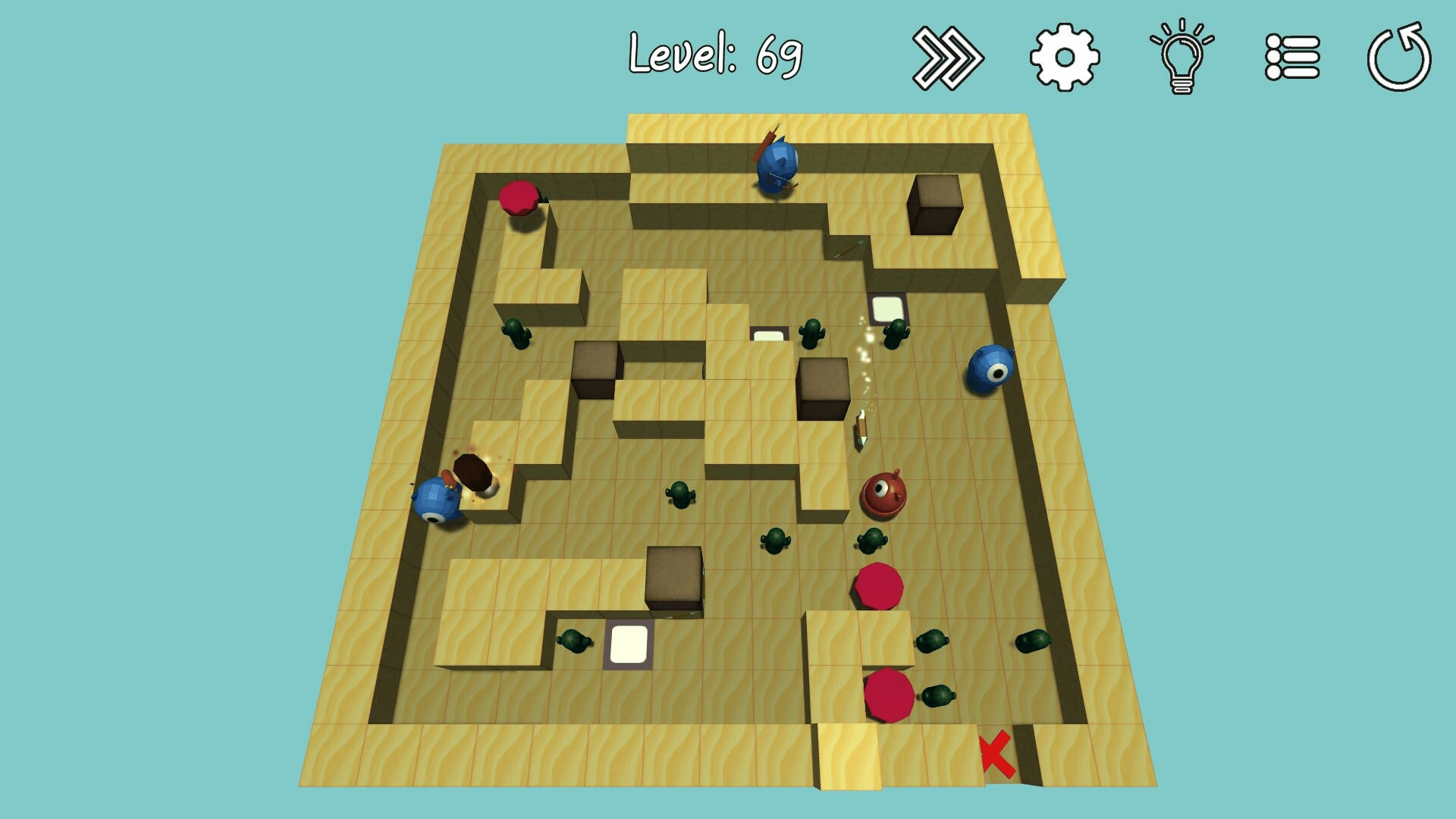 Help Block rescue his friends from the terrible bluebies. This cube pushing puzle Game is an evolution of the clasic sokoban/box pushing type games in a multilevel 3D. Enemies, spells and traps add another level of complexity. The difficulty grows fast, and the puzles become unforgiving very soon.