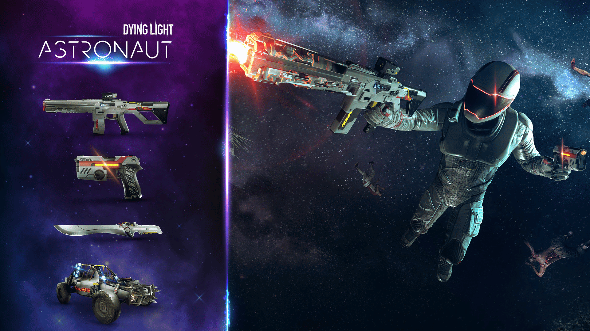 The bundle contains: - Laser rifle: The V-23 Eraser - Stasis pistol: The V-40 Suspender - Machete: The V-27 Shifter - Outfit: The V-9 Defender Suit - Buggy skin: The V-39 Star Rover
