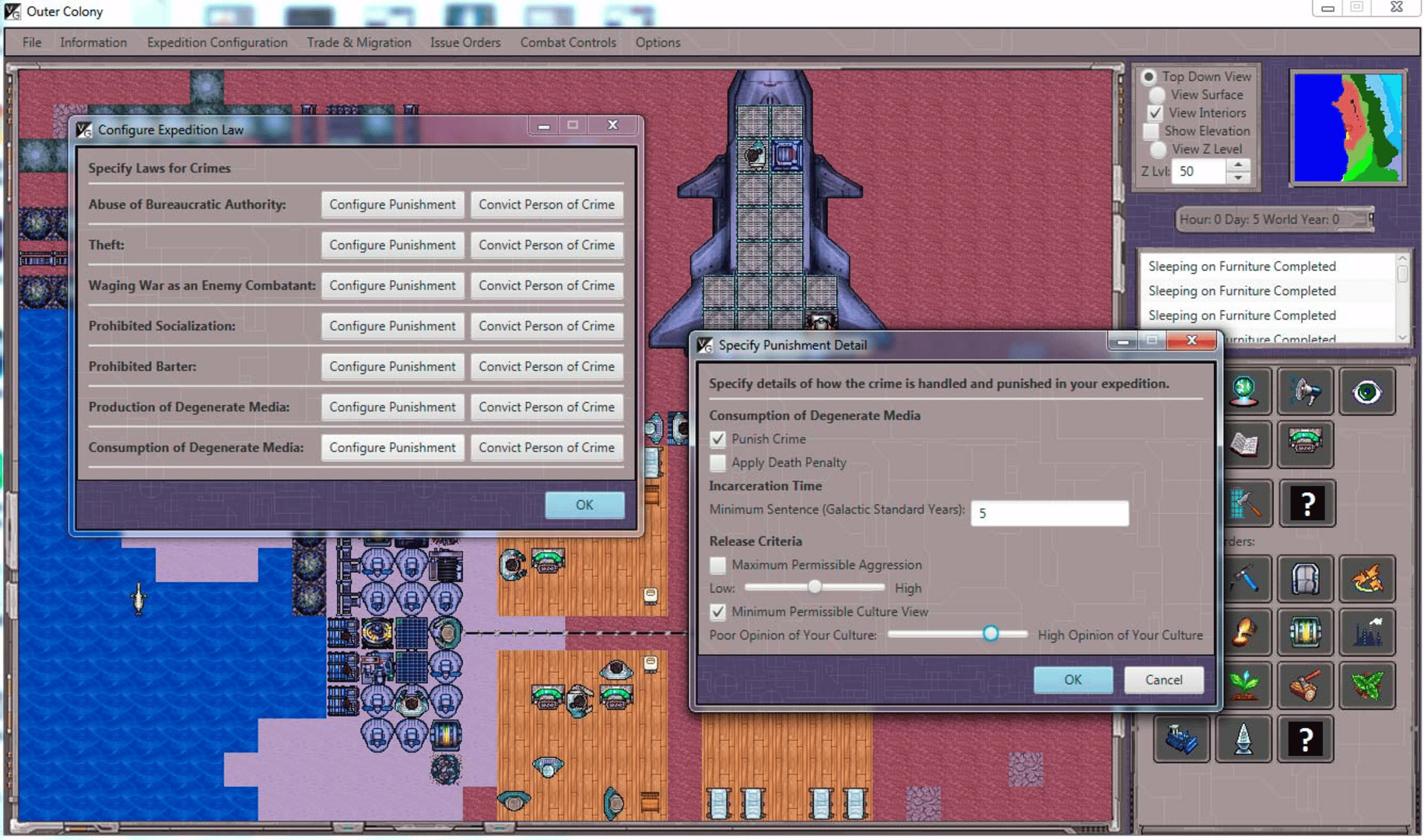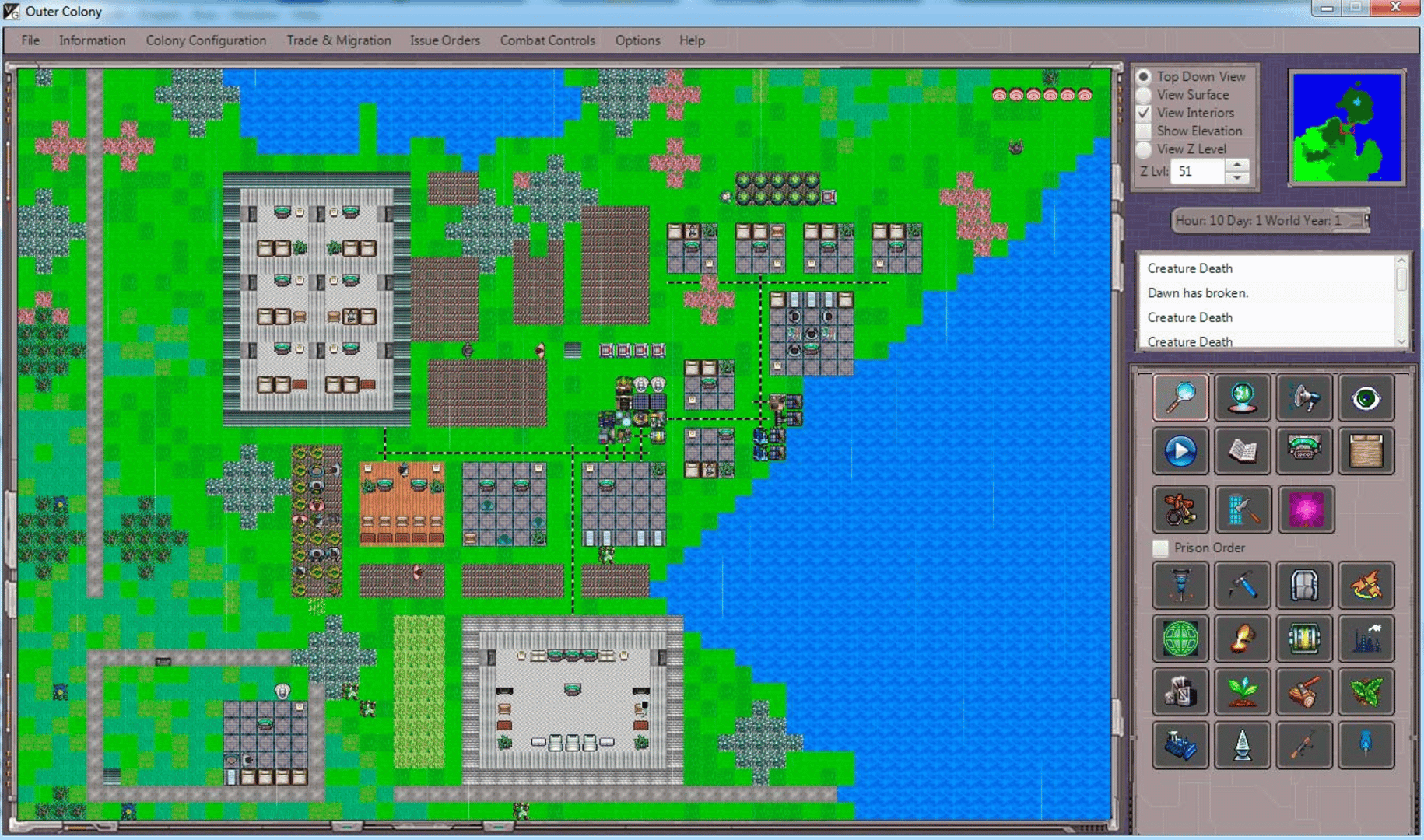 Outer Colony is an open ended, real time strategy game with a focus on artificial intelligence and simulation-derived mechanics. Set in a sci-fi universe, players command expeditions of spacefaring colonists in an effort to establish settlements on remote worlds. Much of the core gameplay revolves around providing for your expedition’s NPCs, managing its fledgling society, freeform building, and tactical combat. Whatever you do in OC affects the persistent game world, so everything from driving species to extinction to terraforming whole regions is possible.
