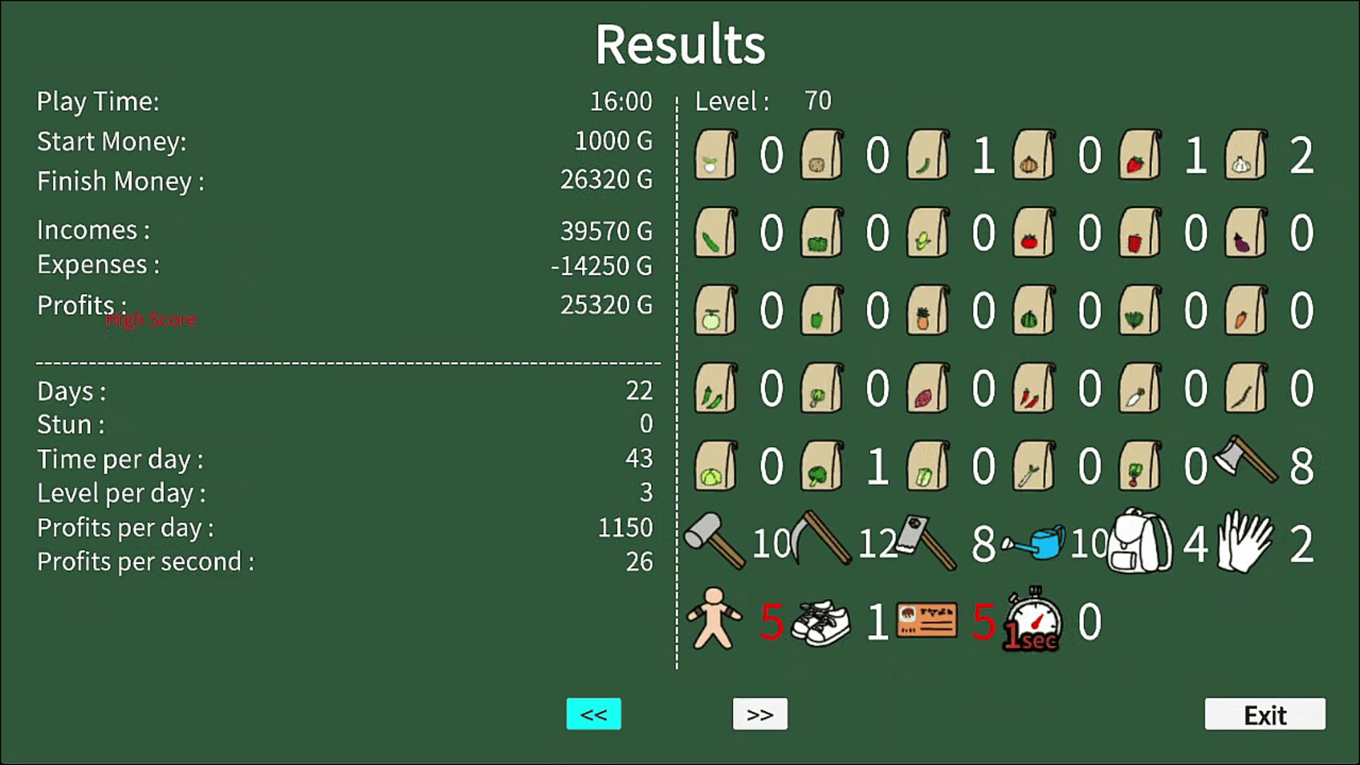 This is a farming game where you compete to see how much money you can make within a time limit. You can get seeds and videos for each level.