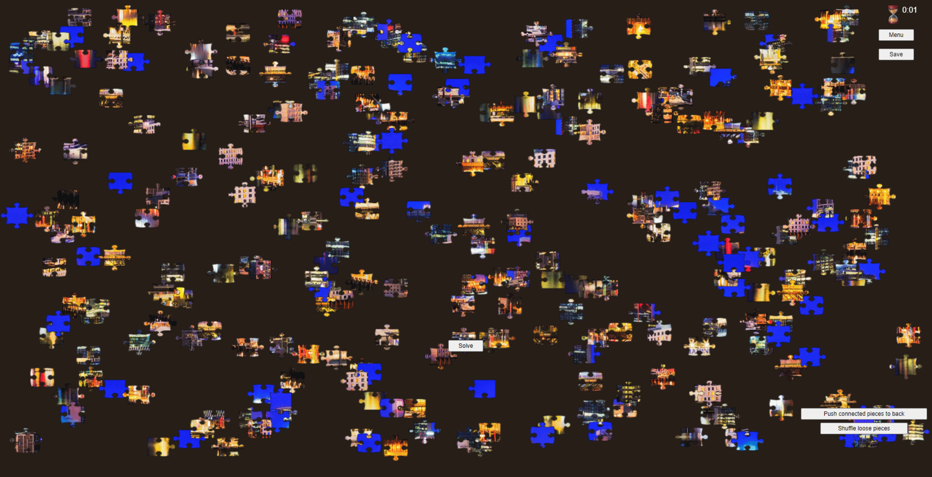 Do puzzles in a new puzzle way! Advanced puzzle layout and involving gameplay will help you to relax after a hard-working day. The player can choose to play with 30, 42, 117, or 285 pieces.