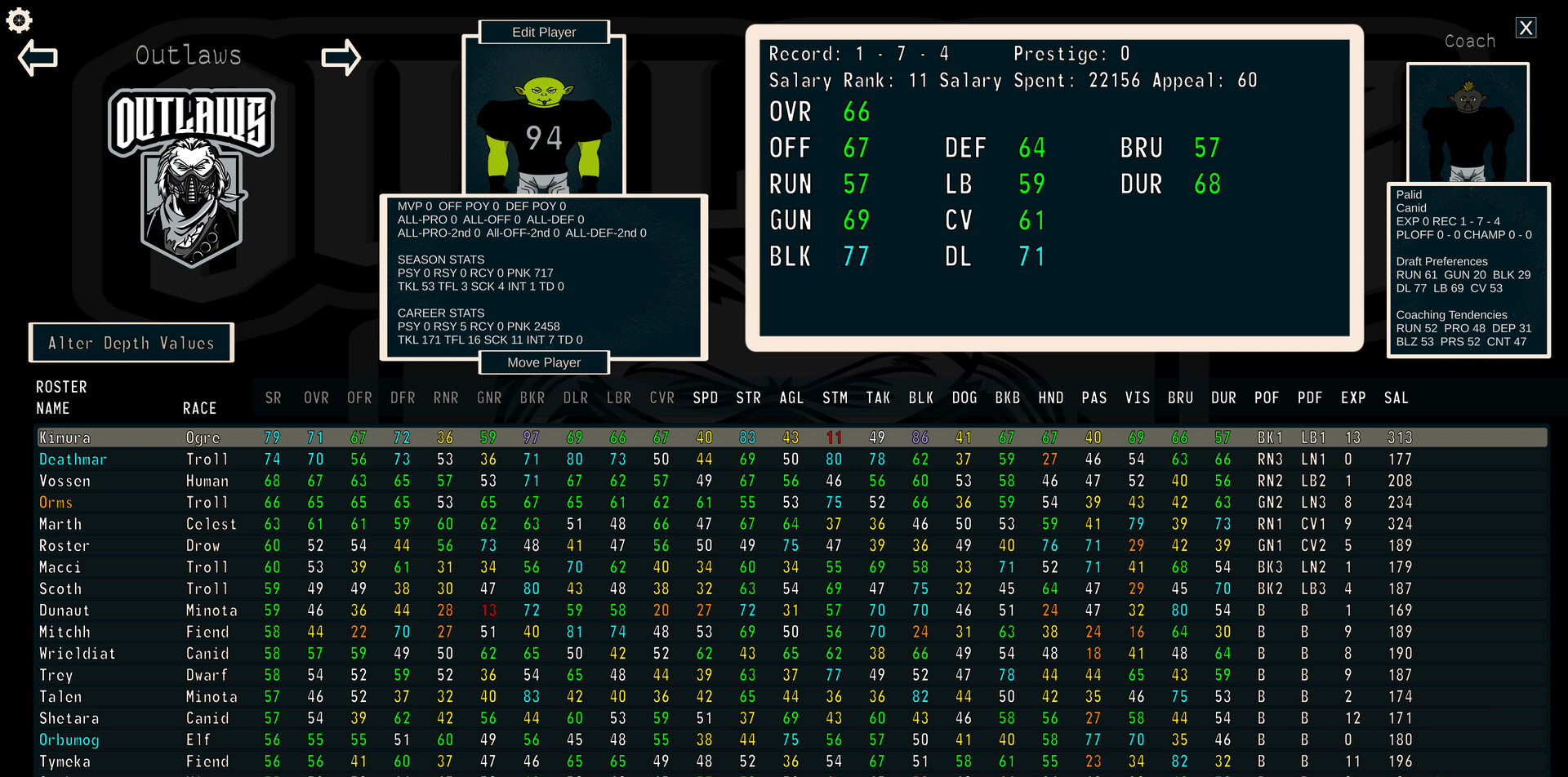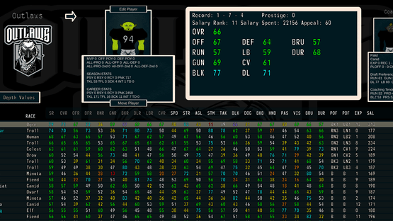 FFFL: Brutalball Manager is a Franchise Management Simulation game, based mostly on American Football in a Fantasy setting. Take full control of the entire league. Tons of customization, deep stat tracking and unique rules.