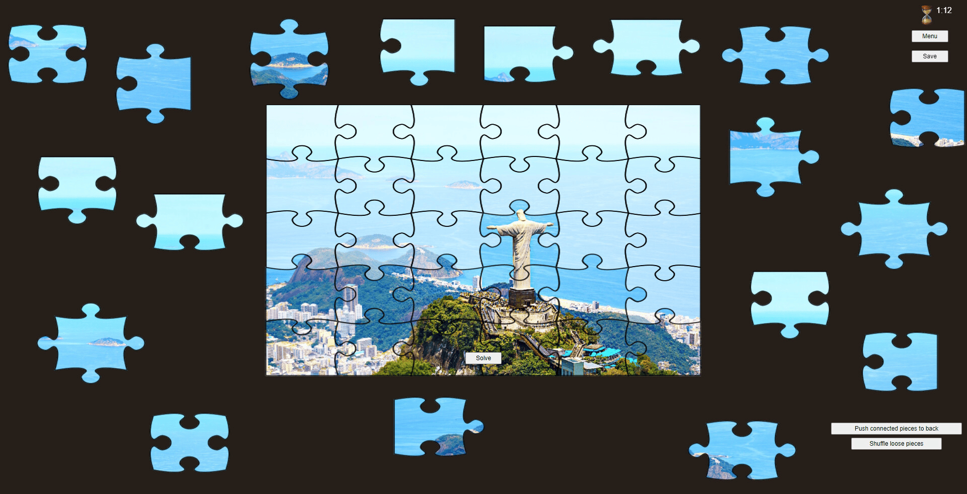 Do puzzles in a new puzzle way! Advanced puzzle layout and involving gameplay will help you to relax after a hard-working day. The player can choose to play with 30, 42, 117, or 285 pieces.