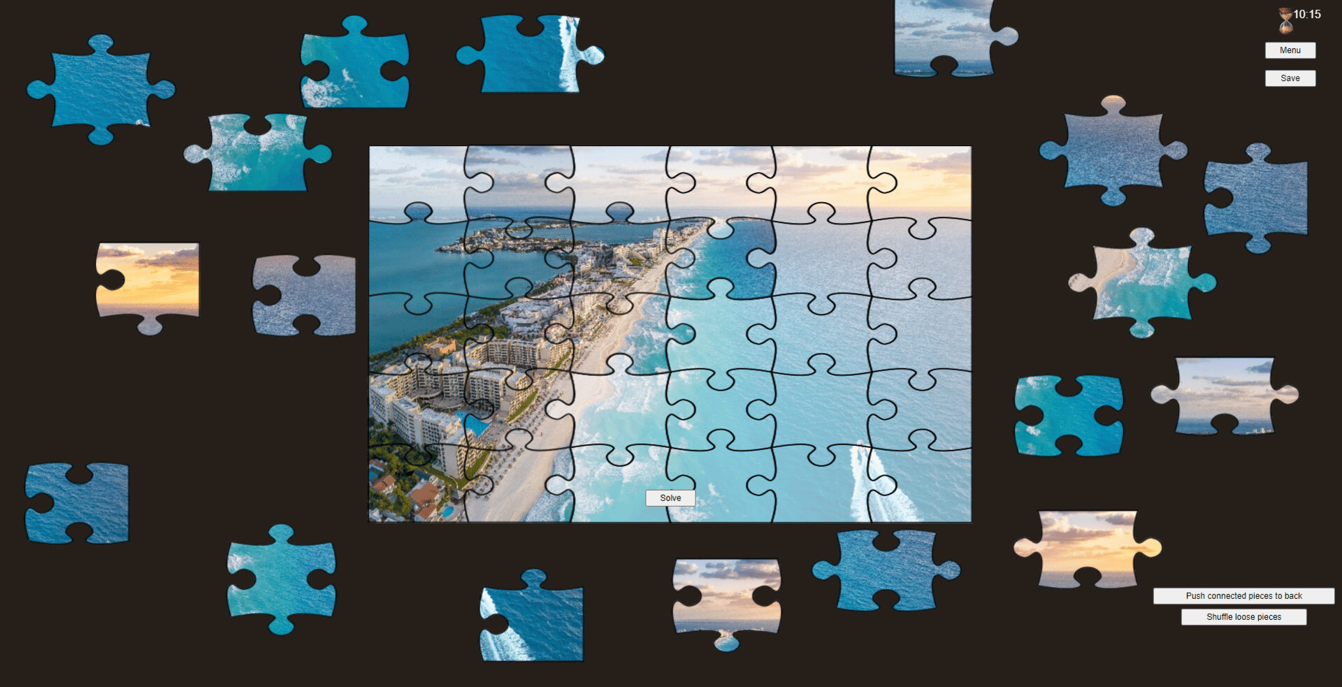 Do puzzles in a new puzzle way! Advanced puzzle layout and involving gameplay will help you to relax after a hard-working day. The player can choose to play with 30, 42, 117, or 285 pieces.
