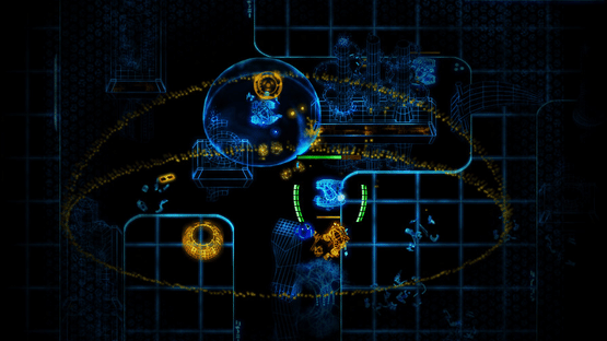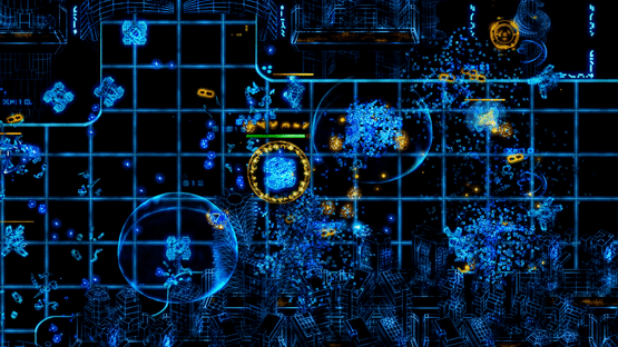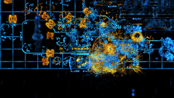 A polished top down action shooter set in a digital like world with upgradable mechs.