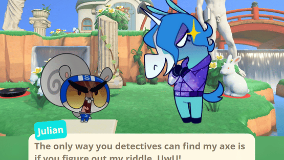 Animal Crossing: New Murder is a game that’s all about finding evidence, talking to fun characters, and solving an (attempted) murder mystery! The game is split into two different playstyles that feed into each other. On one side is a dream island within the Switch game, ACNH. You, as the player, open up ACNH and come to the dream island to search for evidence and clues. The other side is a visual-novel web browser game. Through the website, you talk to the villagers and try to get to the bottom of this mystery. Enter the items you find in ACNH to present to characters and in court. But some items you can only find with help from the villagers on the web game. After gathering enough evidence, you’ll put your knowledge to the test in the courtroom to nail the culprit!