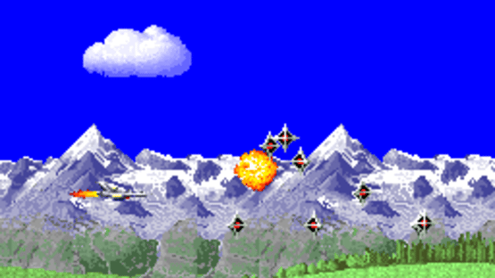 A standard horizontal shoot'em up. The main weapon can be powered-up to provide faster and more powerful shots. Weapons such as lightning or three-way shots appear as power-ups. There are 18 levels to complete the game. If you use a credit to continue in levels 14 through 18, you will start back at level 13. This game is a prototype or had a limited release.