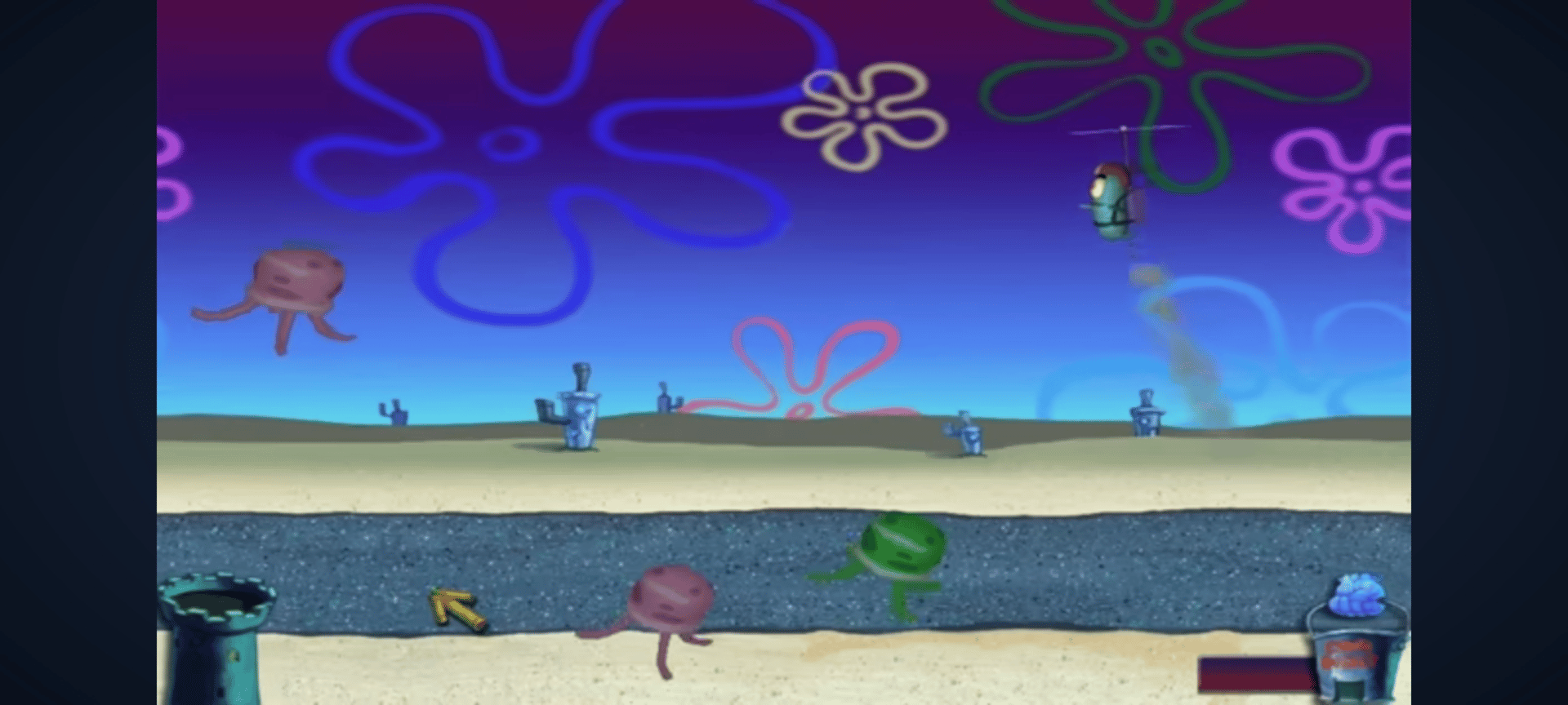 The PC-released version of The SpongeBob SquarePants Movie, a point and click adventure game unrelated to the 3D platformer released on console. SpongeBob and Patrick leave Bikini Bottom and journey to new and unexplored lands. Players join their struggle to defeat Plankton's diabolic scheme to take over the world...Plan Z! Plankton has stolen King Neptune's crown and assumed control of the town of Bikini Bottom, placing the blame squarely on Mr. Krabs. Together, SpongeBob and Patrick must journey to far away Shell City to recover the crown, return to Bikini Bottom and save the town and Mr. Krabs.