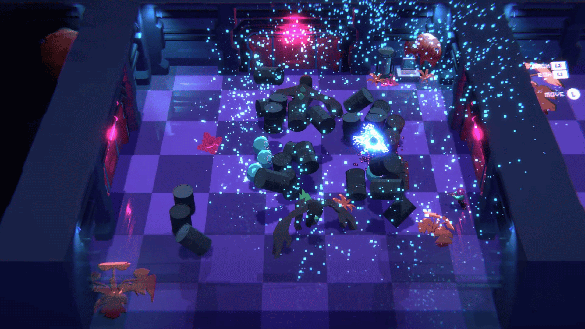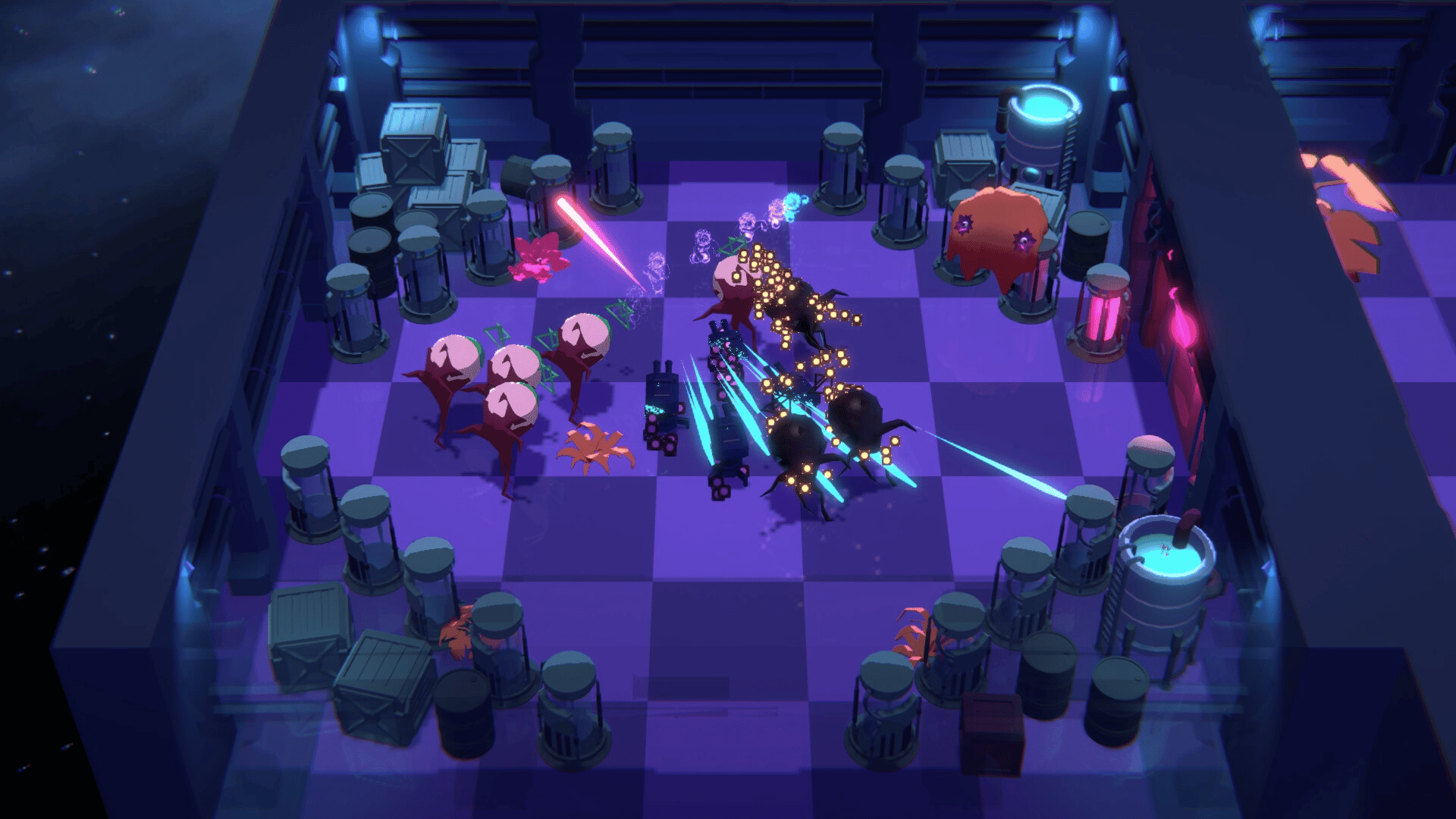Colorful bite-sized roguelike twin-stick bullet-hell dungeon crawler! Explore a procedurally generated research lab, throw black holes at monsters, dodge lasers, and fight a final boss beyond comprehension!
