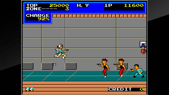 "COP 01" is an action game released by Nichibutsu in 1985. Players take control of rookie detective James with Police Precinct 1, infiltrate the secretive Specter organization's hidden base, and rescue their kidnapped partner Stacy as the goal. Fight your way through the countless enemies in the hidden base using both your normal jump and the higher "Rocket Jump" performed using a limited gauge!
