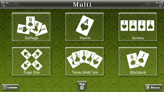 An all-in-one collection for all your card game needs! Whether it's solitaire or competitive online games like Daifugo or Blackjack you're after, this is the game for you!